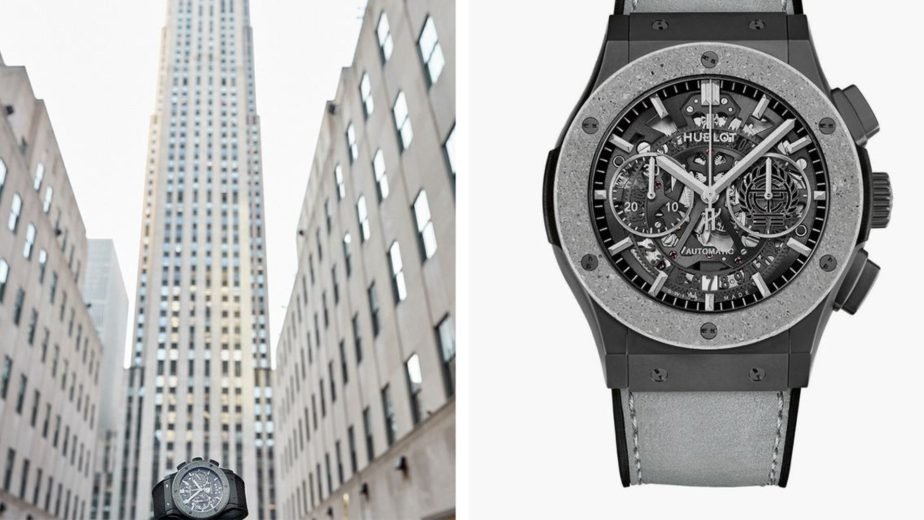 When, earlier this year, Italian designer Giuliano Mazzuoli introduced the Cemento, the world’s first wristwatch with a case made entirely from concrete, I figured ‘Cool, but surely a cul-de-sac?’ It followed Girard-Perregaux’s watchesof 2012 and 2015 honouring Le Corbusier, with concrete dials. Now, as Hublot launches the Classic Fusion Aerofusion Chronograph Concrete Jungle, it begs the question: If ‘one is chance, and two is coincidence’, does ‘three’ mean we’ll all soon be wearing brutalism’s favourite fabric on our wrists?