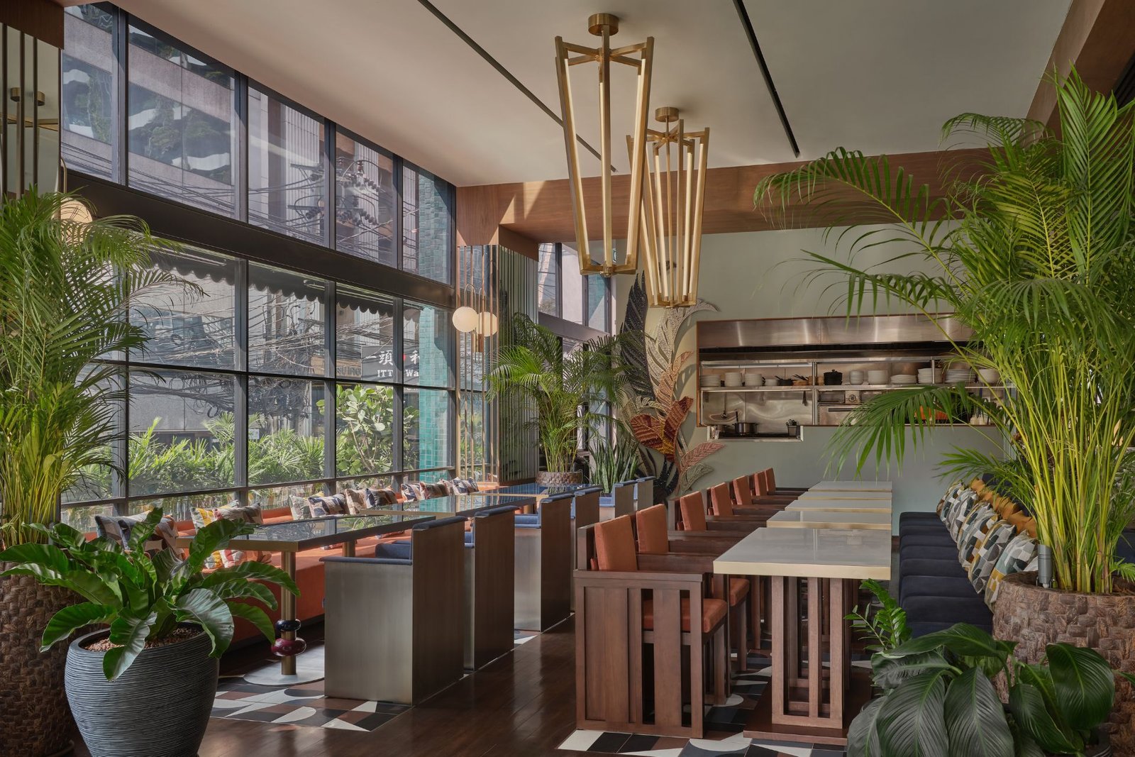 As night falls, the mid-century styled OPEN BAR comes alive with a glam, art-deco atmosphere. The bar features an extensive selection of Bangkok’s best cocktails and the city’s largest selection of Thai craft beers. Weekends come alive with funky DJs spinning authentic vinyl on twin decks.