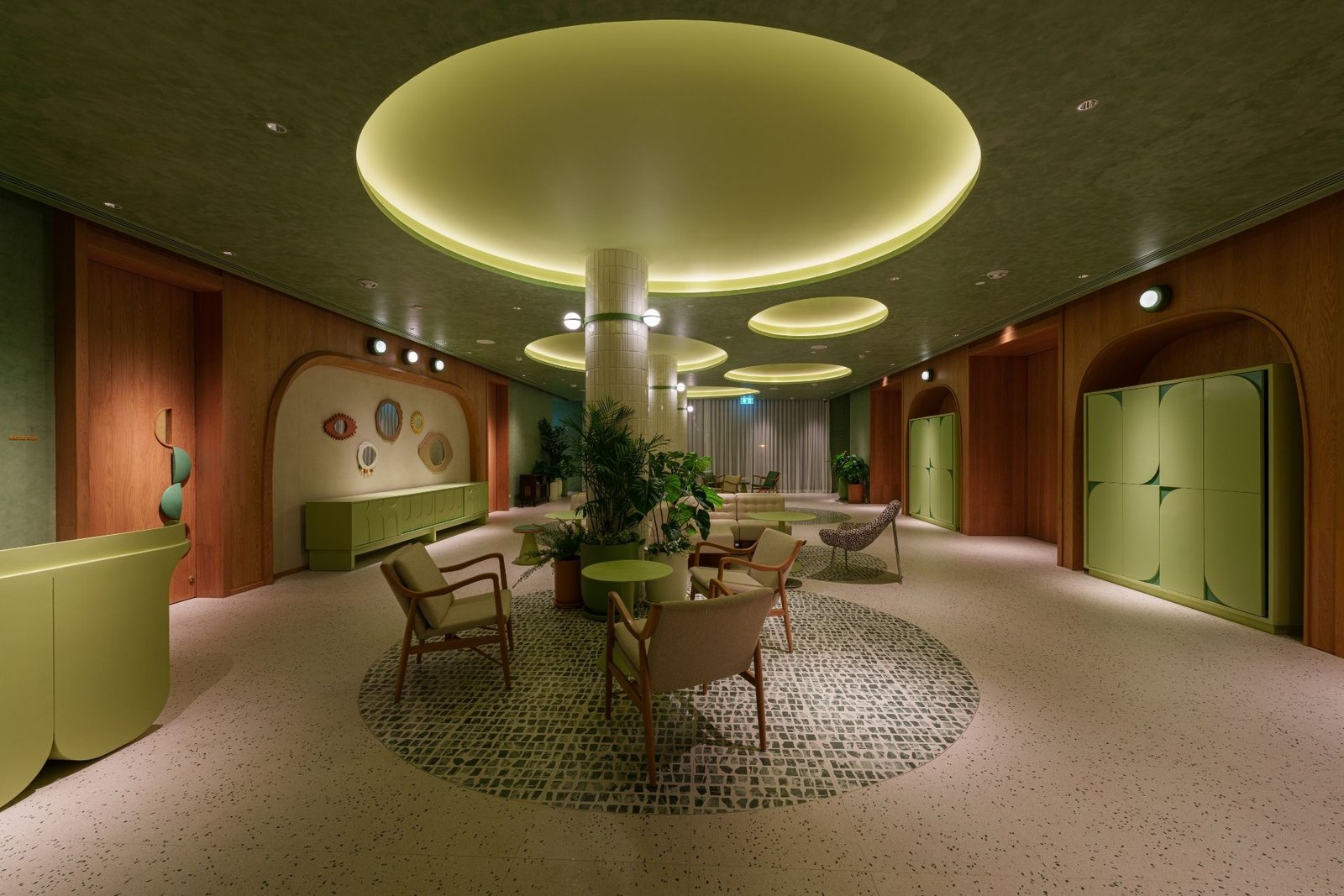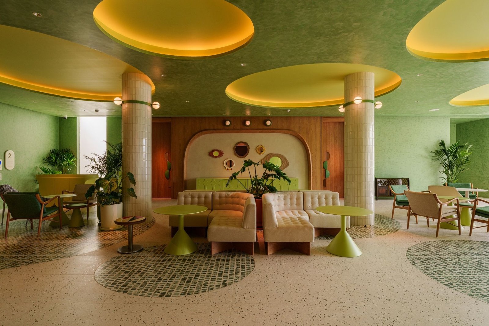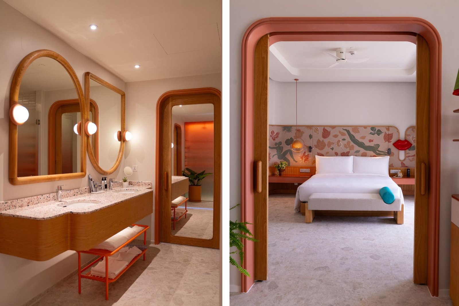 Inside, the design narrative is a multi-studio collaboration between DIN Studio, Studio Lupine, and The Standard’s own creative team led by Verena Haller. The interiors nod to a 1960s coastal vernacular—warm woods, terracotta hues, hand-woven textures, sculptural lighting—balanced with the brand’s signature boldness. The tone is unmistakably Standard: witty, warm, and refreshingly unpretentious.