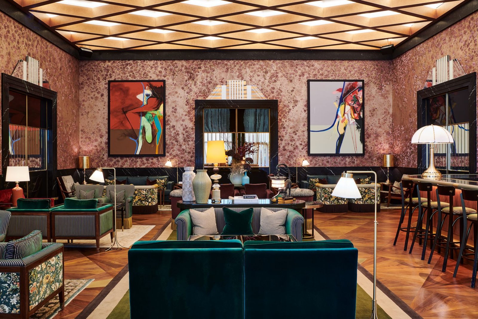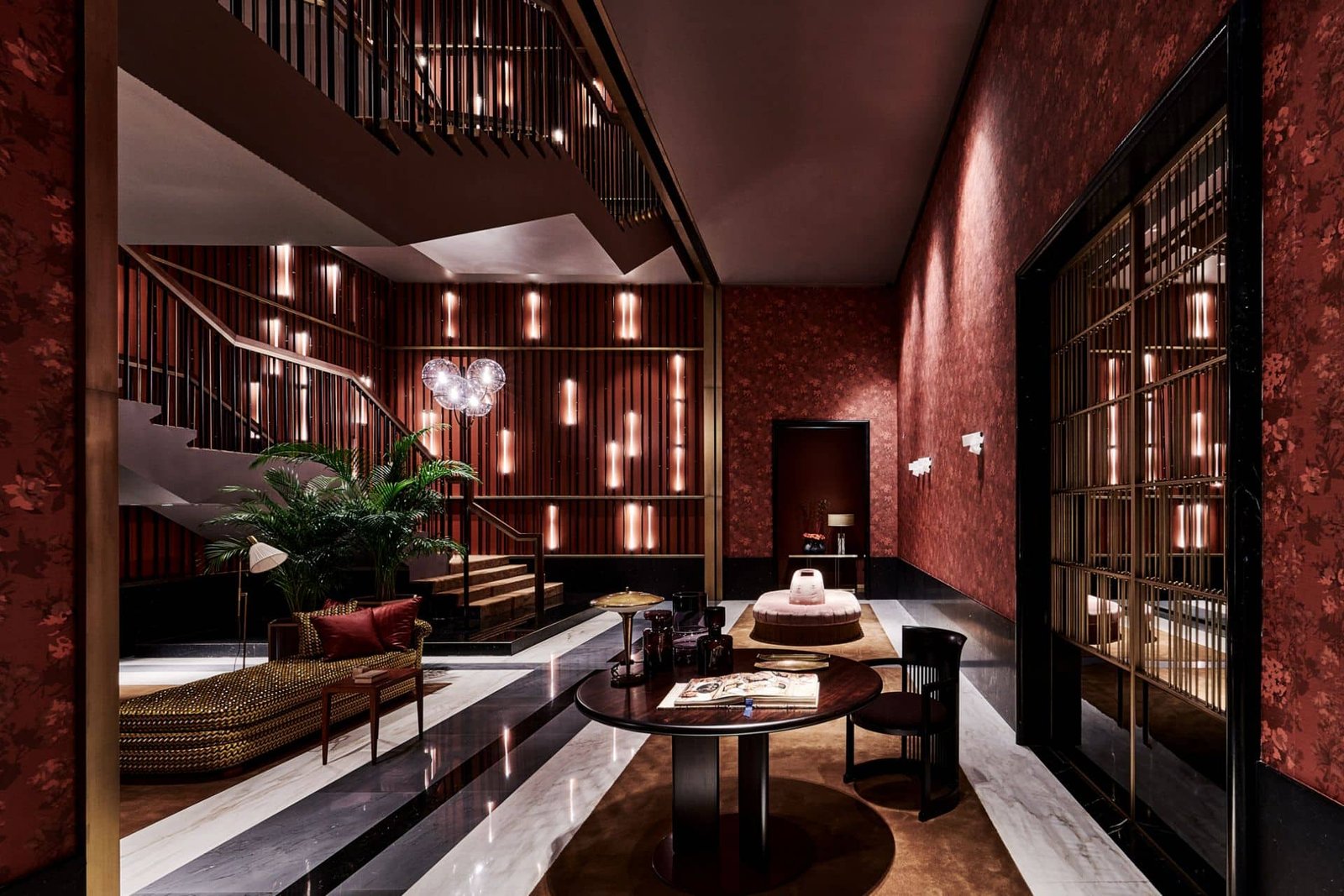 The club occupies multiple floors inside ICD Brookfield Place, a Foster & Partners–designed tower in the centre of Dubai’s financial district. Step inside and the atmosphere shifts. Rather than a single grand room, the club unfolds as a sequence of spaces: lounges, dining rooms, bars, galleries and terraces layered across several levels. The effect feels less like a hospitality venue and more like the home of a well-travelled collector.