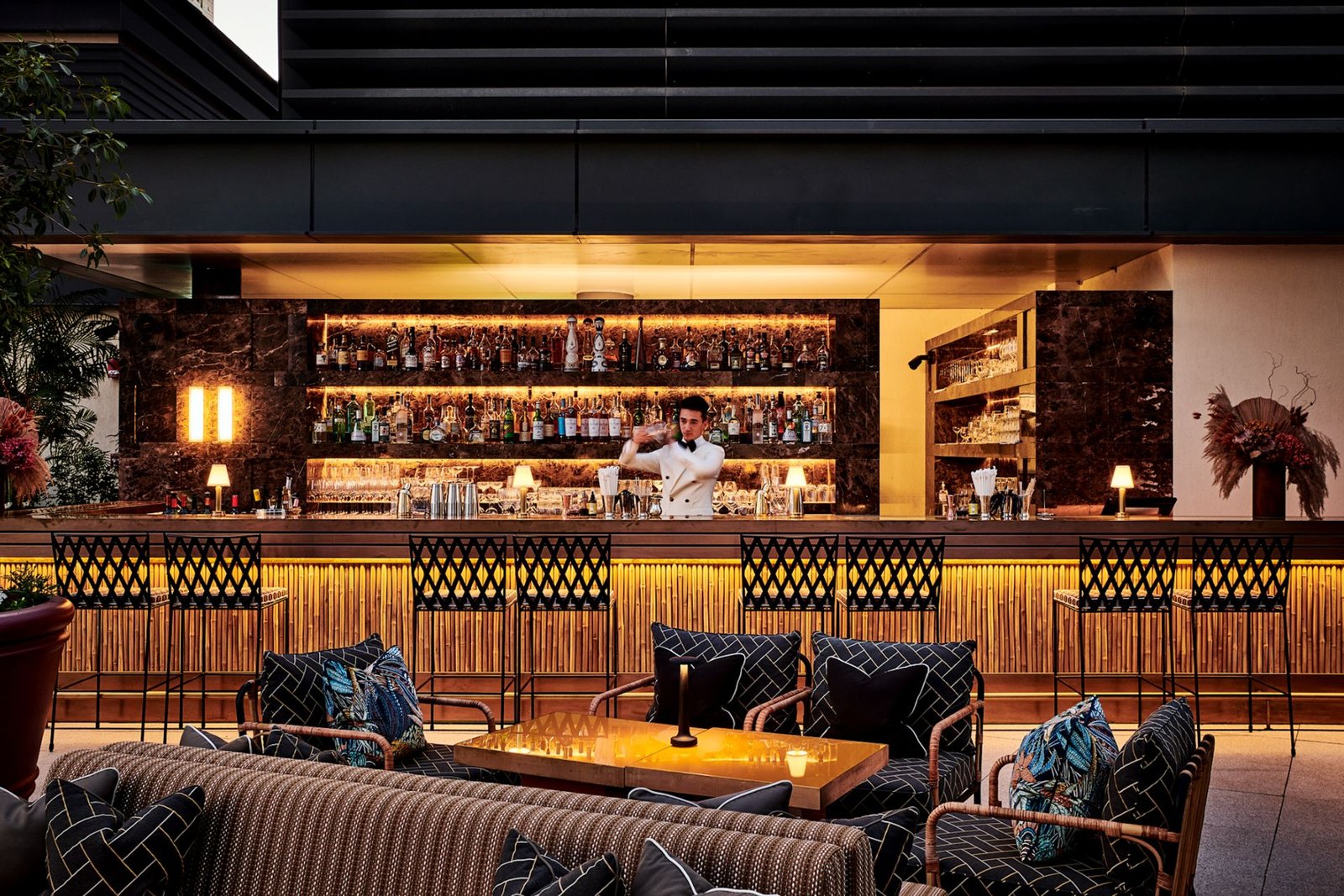 Food plays a central role in shaping the club’s social atmosphere. The Brasserie serves as the club’s communal dining room — an elegant space where members gather for breakfast meetings, long lunches and relaxed dinners. The menu draws on European classics, delivered with a sense of familiarity rather than theatrics. It’s the sort of cooking that encourages conversation rather than distraction. Elsewhere, another restaurant introduces a more energetic mood. The space is louder, livelier, designed for evenings that stretch deep into the night. Dishes arrive with bold flavours and theatrical presentation, creating the sort of environment where guests linger well past dessert.